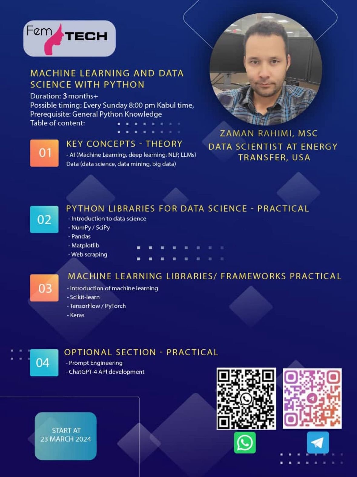 Zaman Rahimi is a seasoned Data Scientist and Python Developer Engineer based in the USA. With a background as a former Computer Science Assistant Professor and Lecturer in Kabul, Zaman brings a wealth of knowledge and expertise to the table.
