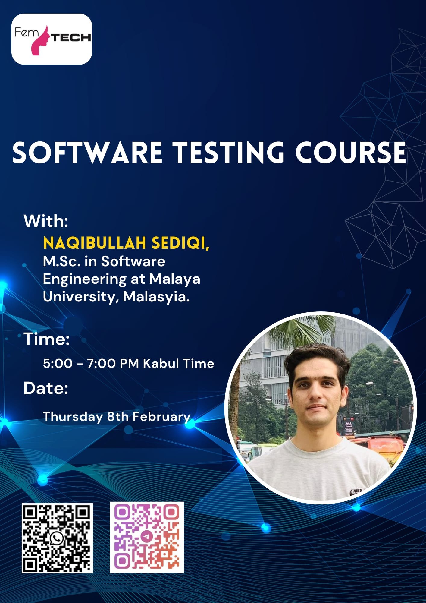👨🏫 Lectured by Naqibullah Sediqi, a dedicated Master's student in Software Engineering at the esteemed University Malaya, Malaysia. He's passionate about guiding you through the intricacies of software testing.